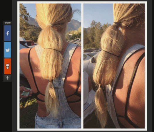 這張照片,若不看標題,可能會覺得女孩的馬尾綁的特別奇怪,因為看起來相當厚重,不仔細看也沒有怪異之處。但看了標題後才知道,原來女孩的金髮中,藏著一整瓶伏特加。