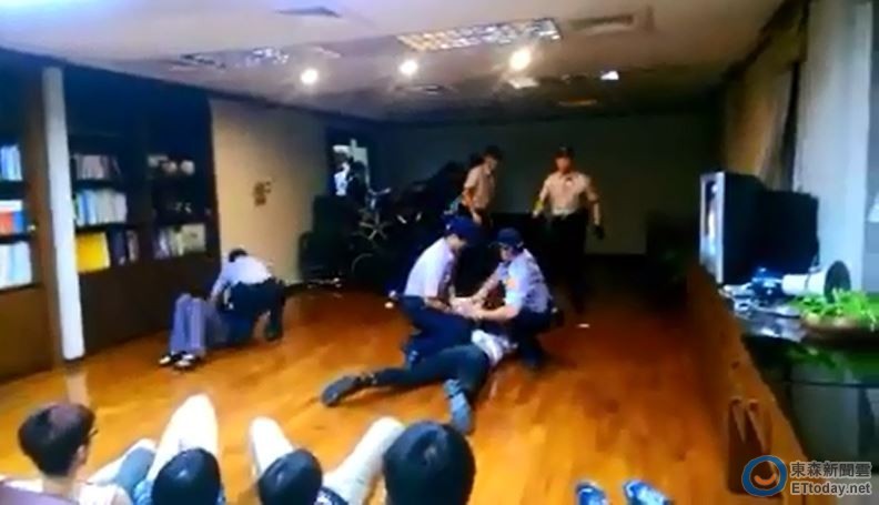 反課綱微調學生23日深夜闖進教育部被捕,而現場畫面稍早在網路上曝光。其中一名衝進部長辦公室的學生接受《ETtoday新聞雲》 訪問時嚴正強調,「我們沒有破壞任何物品,也沒有翻東西。」警察卻是毫不客氣的對待學生們,包括重摔、折手、制伏在地,「我們的教育,死了。」