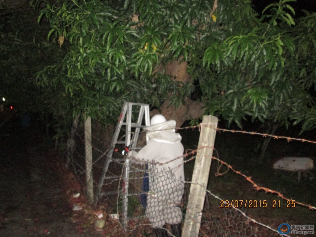 美濃分隊表示,23日獲報後趕往查看,評估現場環境和避免影響採買民眾,決定在晚間9點「夜襲」,穿上全套捕蜂衣,展開除蜂巢任務。當時遇到一名剛下班的農會女職員,聽到超市前居然有顆虎頭蜂巢,直說「好恐怖」,趕快離開現場,還不時叮嚀弟兄們要注意安全。