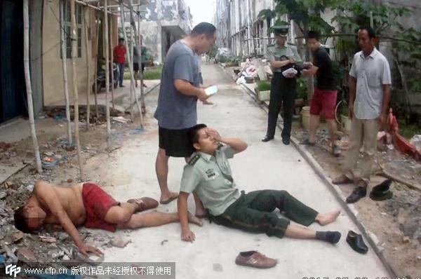 ▲超英勇廣西民警徒手接跳樓男。(圖/CFP)