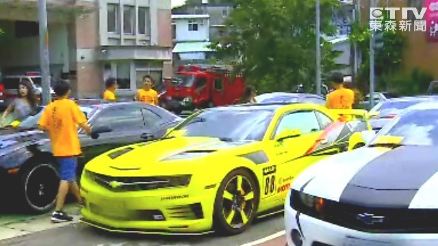 幾十輛黃、黑、紅、白等各式五顏六色酷炫超跑停在新北市路邊,包括黑色的瑪莎拉蒂,還有還有三四輛不同顏色的變形金剛大黃蜂雪佛蘭跑車,吸引不少路過民眾注意。而現場最貴的,就屬流線感十足的Porsche GT3,一台要價800多萬元。
