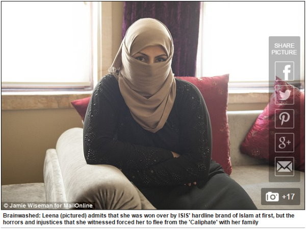 根據《每日郵報》(Daily Mail)報導,一名化名為麗娜(Leena)的女子,日前逃出IS組織,她回憶加入過程,是被其宣傳廣告所吸引,認為伊斯蘭國帶領下能讓穆斯林走向正確的道路,因此加入組織,之後成為一名宗教法庭女法官的事務員,不料卻因此看到許多慘忍不堪的行為和畫面。