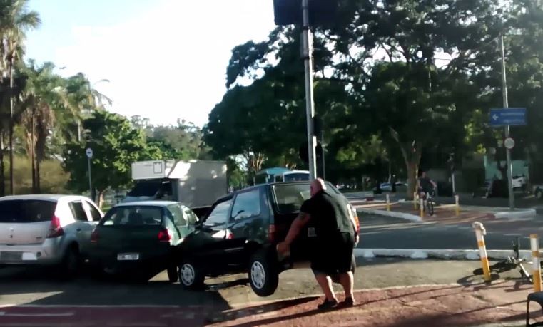 騎車遇上違停車輛擋路,大部分的民眾除了檢舉移車,大概就只能摸摸鼻子繞開,但巴西這名超級大叔卻做出了非常酷的舉動,他竟然把違停在腳踏車道的汽車徒手移開,威猛的行動讓附近圍觀的民眾高聲歡呼,整段過程也被附近的網友拍下上傳,讓網友大讚:「他移汽車像是在移摩托車!」