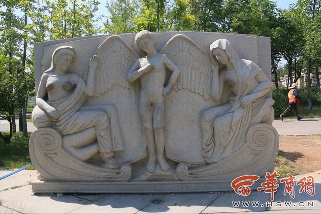 這些雕像不但私處被「抹黑」,就連胸部都被摸出兩個黑黑的圓塊。大陸網友表示,這些藝術品是用來欣賞的,不是供遊客褻瀆,希望遊客提高素質,否則會降低園區的文明。