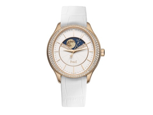 Limelight Stella將月亮的完美溫婉意象融會貫通,展現經典的伯爵風格。以無窮巧思演繹眾星拱月的主題,以含蓄的橢圓構圖嵌入圓形錶殼之中,呼應錶盤中心的設計。而設於12點鐘位置的月相在兩行美鑽相伴下隨行登場,在玲瓏的腕上穹蒼中,上演28天由盈到虧的循環戲碼。
