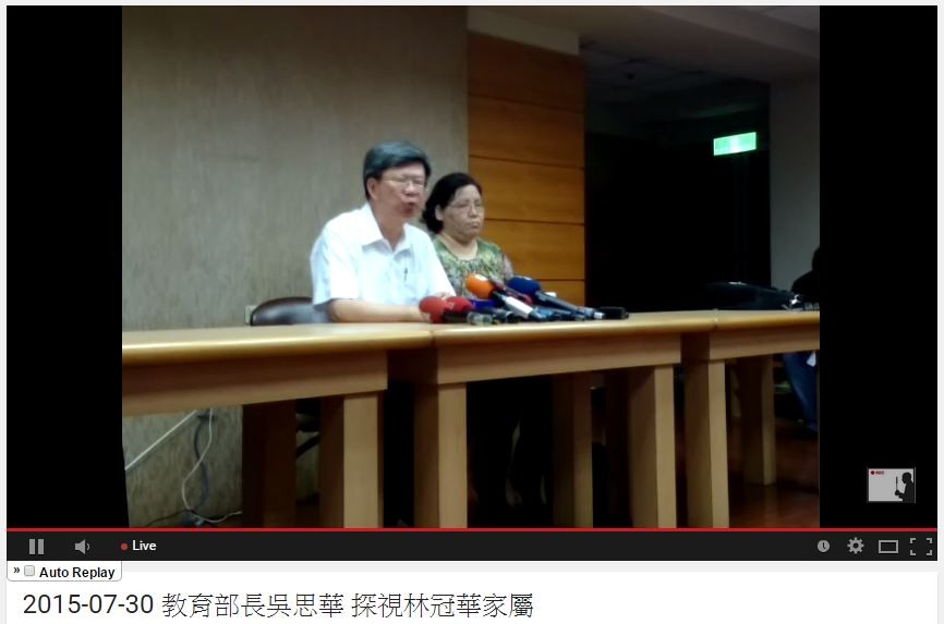 ▲教育部長吳思華在林冠華家中開記者會。(圖/擷取自公民實況轉播組 C.R.C.G.)