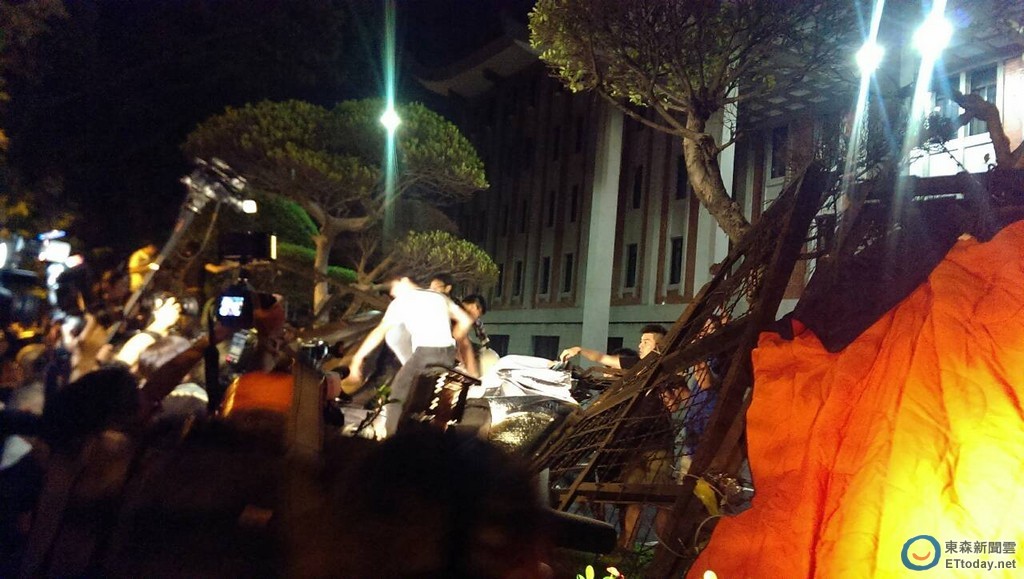 不過教育部等相關部會過了1點皆沒有動靜,學生在1點30分兵分兩路,從內政部與教育部翻牆進入,雖然現場警方早有準備,但學生仍是靠著外套等道具,成功越過拒馬翻牆闖入教育部與內政部區域,目前已經有部分群眾進入教育部前廣場。
