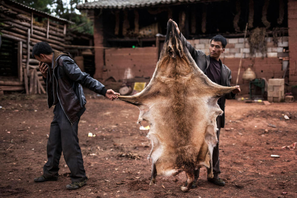雲南省祿勸縣雲龍鄉大蕎地村最近發現有野狼和豹子的蹤跡,村民趁野狼進村偷吃雞時,帶著棍子、家犬追趕,把兩隻狼嚇得跑下山,其中一隻在逃跑過程中鑽進山洞,被亂棍打死之後燉來吃。
