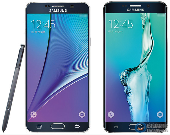▲三星日前遭曝光疑似 GALAXY Note 5(左)跟 S6 edge+(右)的官方圖片。(圖/合成自Twitter)