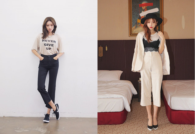 除了可以把你的上衣紮進高腰褲裡面之外,飛炫姐非常推薦短版上衣配上高腰褲的這種穿法。如果你想要拉長你的腿部比例,那麼謹記一個原則,就是必須要「上短下長」,這樣就可以讓自己看起來腿變長囉!只是如果本身屬於水桶腰的女生,還是盡量避免這樣的穿搭囉!