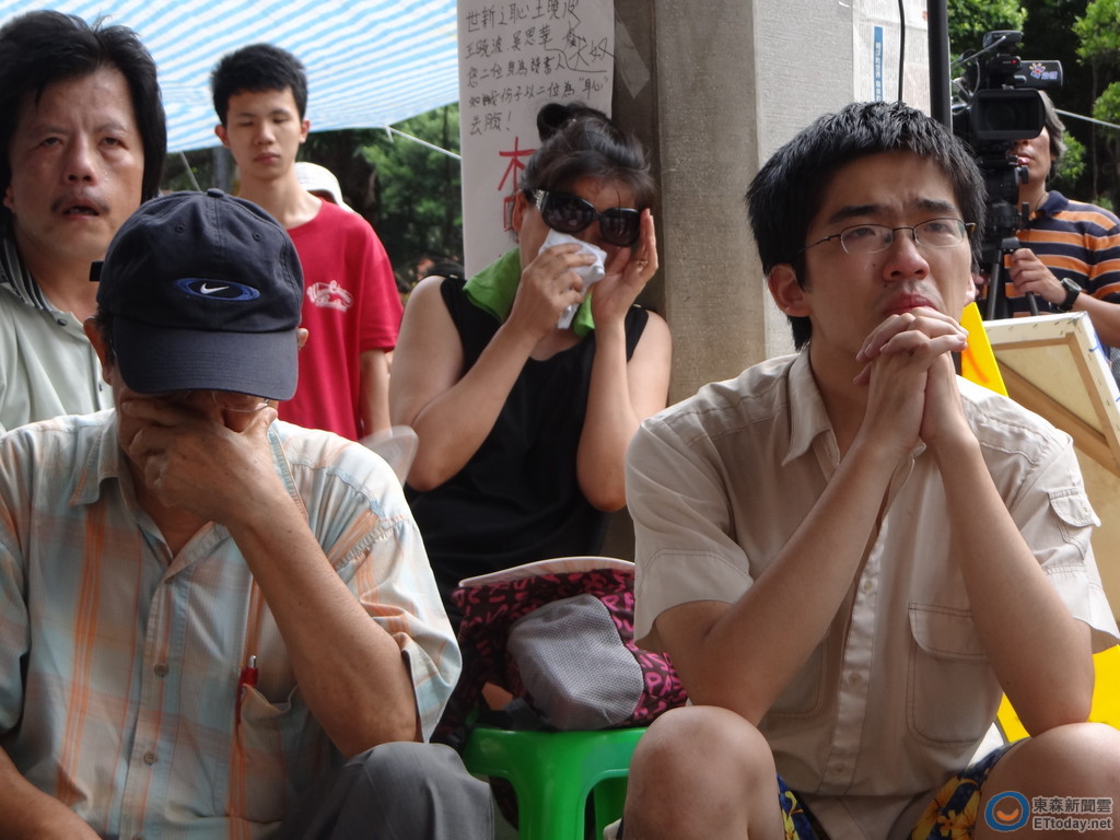 同時,教育部前廣場也聚集了約100位民眾,朱震痛哭後,現場一片安靜,還可聽到細微的哭泣聲,定睛一看有約10位民眾被牽動情緒,數度掉下眼淚。