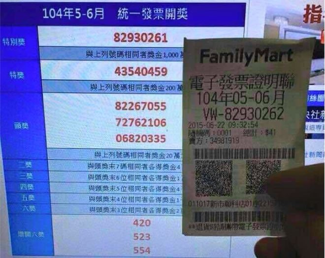 ㄧ張「離千萬獎金只差一號」的發票照片,引起網友瘋傳。照片中這張104年5、6月的發票,號碼竟只跟1千萬特別獎獎號差1號。很多人看了忍不住跟著揪心「殘念啊~」,還有人好奇那位中獎的人是誰。