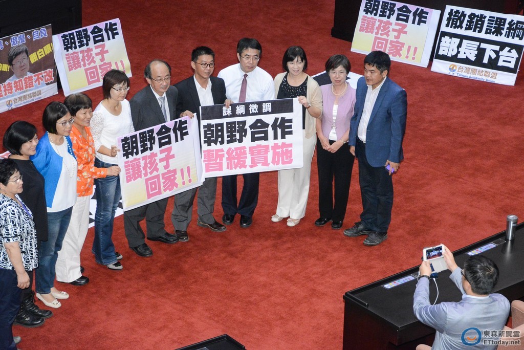 立法院民進黨團、台聯黨團連署召開臨時會處理課綱,經過4日2小時協商決議撤回,朝野黨團也同意建議教育部依《高級中等教育法》第43條,立即啟動「高中以下課程審議會」進行課綱檢討,而104年度教科書由各校自由選擇。