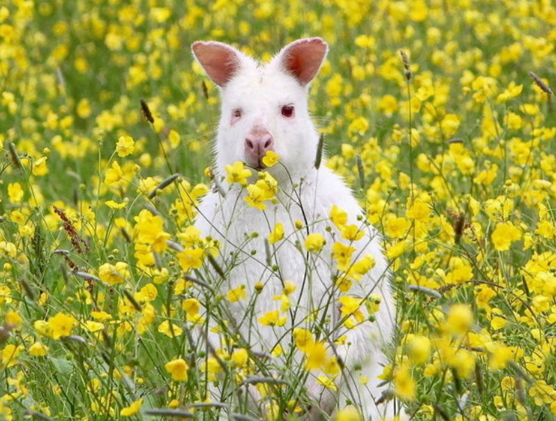 在英國看到袋鼠已經十分不容易,而且還是白化的,就更為難得了。據密蘇里州環保部」(Missouri Department of Conservation)2005年發表的 一篇文章指出,哺乳類動物發生白化症的機率是萬分之一。