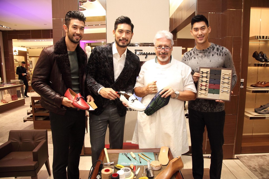 ▲毛加恩、高以翔、簡浩現身Ferragamo訂製開車鞋晚宴活動,與義大利工匠相見歡,親自見證義大利老工匠訂製鞋的巧手工藝。(圖/Ferragamo提供)