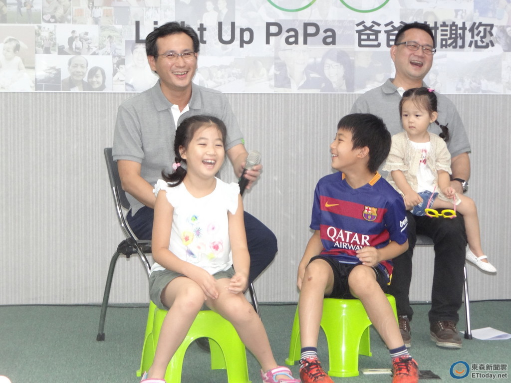 ▲民進黨發言人鄭運鵬、阮昭雄、王閔生帶著兒女參加Light up PaPa影片公布記者會。(圖/記者張語羚攝,下同)