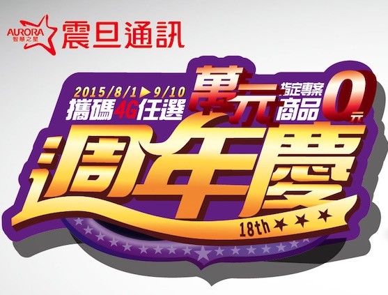 週年慶期間8/01-9/10,來震旦通訊申辦指定攜碼4G專案;就送價值萬元商品,除了手機與平板,特別推出AURORA Beauty精選保養品組可供選擇,讓你美麗從保養開始。且只要申辦門號,即可享行動電源買一送一。