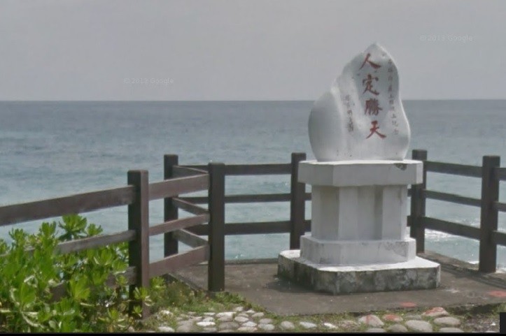 ▲人定勝天碑遭沖入海中。(圖/翻攝自Google Map)