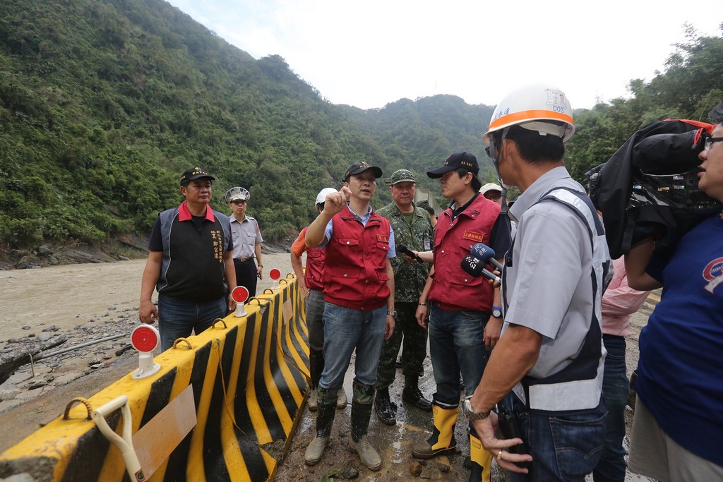 ▲朱立倫9日視察烏來地區災情,也前往龜山國小了解受損情況。(圖/新北市府提供)
