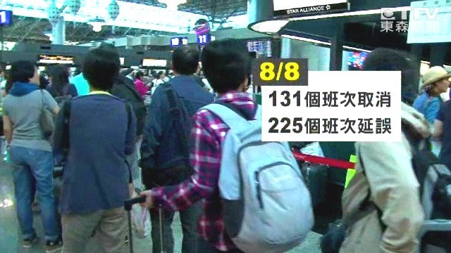 受蘇迪勒颱風影響,桃園機場在8日有366個航班被延誤或取消,各航空公司自9日凌晨開始都緊急加派人手,預計在今天(10日)將多達12萬人以上的旅客消化完。桃機統計,自9日凌晨5時起,每小時的入出境旅客達到3000人次,後又攀升至6000-7000人,一直維持至深夜12時,航機在天空與地面都擠成一團。