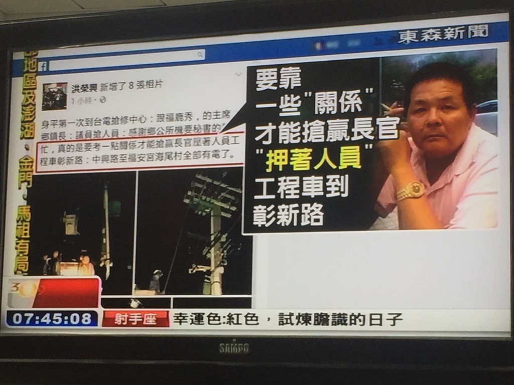 ▲▼彰化縣伸港鄉代表洪榮興在臉書自誇壓台電人員搶修。