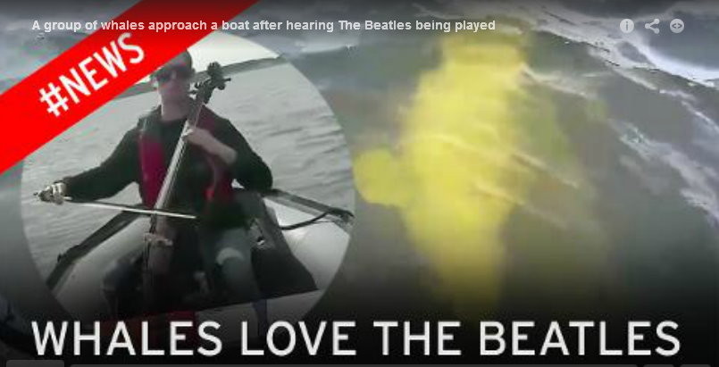 ▲赫頓用大提琴即興演奏了「披頭四」經典名曲《昨日》,悠揚樂聲讓白鯨群翩翩起舞。(圖/翻攝自網路)