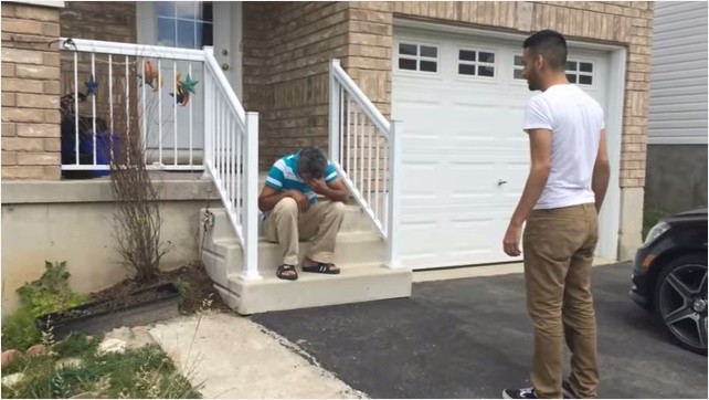 把車開回家後,他先叫錄影的朋友在外面等。爸爸好不容易被請出來後,一看到賓士車就問:「這是誰的車?」在兒子說是要送他的車後,爸爸怎麼樣都不相信,以為是在騙他。直到Zaid拿出車鑰匙讓他上去發動後,爸爸先是下車給了他一個大擁抱,接者就獨自走開......