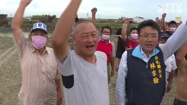 「保護我們的土地,抗議啦!抗議啦!」上百位全興村民聚集在魚塭前大喊抗議,因為這陣子他們光是聞到不斷傳出的臭味,都快受不了了。村民說,「回填這個很臭,我們根本在這邊都無法待,待不到一小時回家就頭暈。」