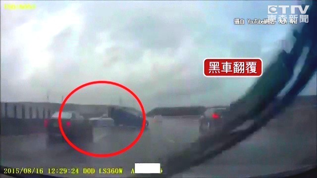 國道員警對《東森新聞》表示,「行經該路段遇到積水,導致車輛失控,不慎擦撞自小客車,導致自小客擦撞到內側護欄翻覆肇事。」黑色轎車翻車瞬間,後車緊急煞住,加上下雨視線不佳,所有車輛速度都不快,翻車駕駛只受到輕傷。