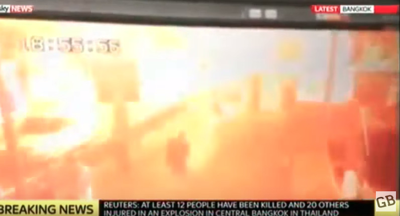 由於爆炸地點位於曼谷鬧區,靠近著名的觀光景點四面佛,所以儘管已經晚上7點,路上的行人依舊非常多,而從曝光畫面可以看見,當時街上車來人往看起來一片平靜,但幾秒後遠方突然傳出劇烈爆炸聲,火光把夜色瞬間照亮,嚇得路人趕緊往爆炸反方向拔腿狂奔,還有人被強烈的衝擊震倒在地,路上車輛也都緊急煞車查看情形,現場一片混亂。