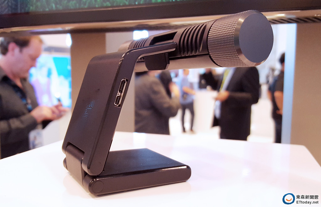 記者實際試用 Razer 的顯示鏡頭,其外觀就像一根電視棒,側邊有一個 mini USB 3.0 的傳輸孔,透過傳輸線插入電視 HDMI 就可以傳輸影像,比較酷的地方在於它能和深度感測器進行近距互動,提供各種增強式遊戲廣播與虛擬實境(virtual reality)功能。