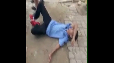 ▲城管與攤販沒有任何肢體接觸就倒地,這段影片在微博上熱傳,他也被網友封為「影帝」。(圖/翻攝自微博)