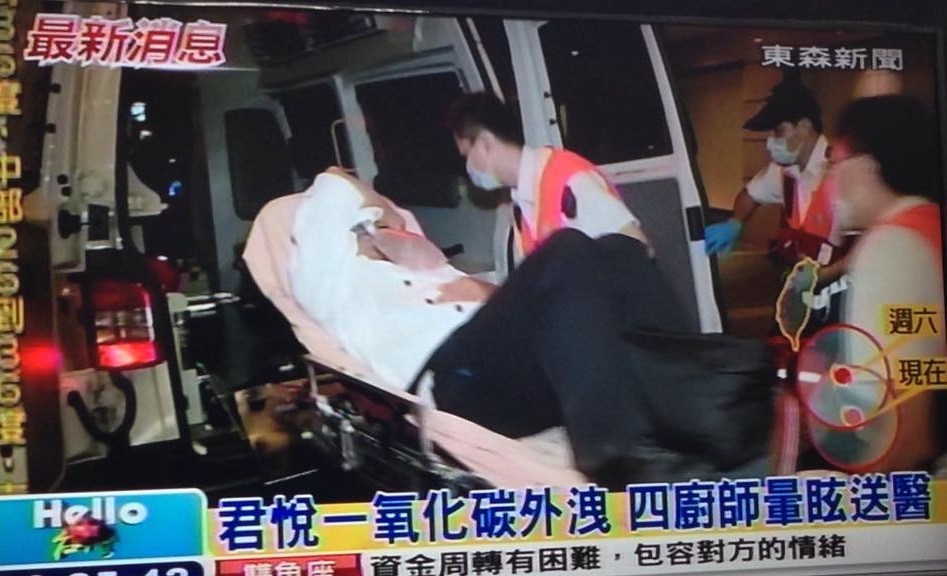 這4名一氧化碳中毒的員工分別為35歲、21歲的男性廚師,以及2名20歲的女性廚師,分別被送往三軍總醫院與台北醫學院搶救。消防人員將4人送醫後進行現場實測,發現該樓層一氧化碳濃度高達500PPM,但由於1樓以上並未測出一氧化碳濃度,因此沒有疏散房客的必要。