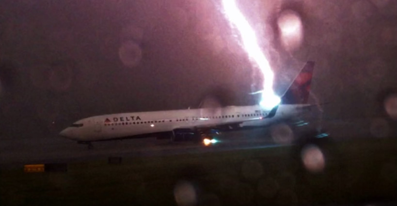 美國一名網友傑克(Jack Perkins)在拍攝亞特蘭大國際機場停機坪等待起飛的波音737飛機時,碰巧拍到閃電擊中飛機的畫面,幸好機上的111名乘客與6名機組人員無人受傷。