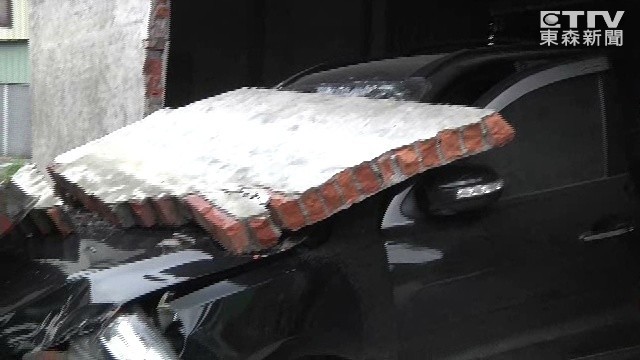 ▲休旅車「穿牆而出」,目擊民眾驚呼:阿娘喂!