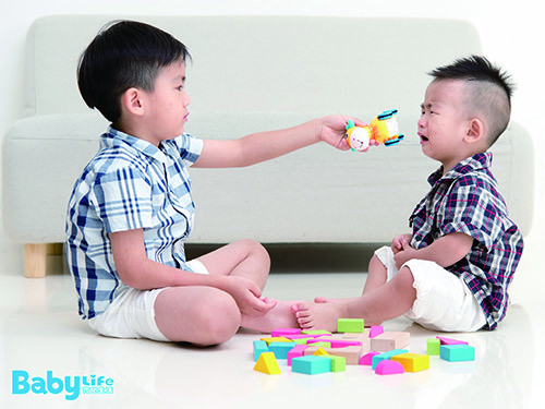 約莫2歲以後,孩子們經常就會玩在一起,可以用正面鼓勵的方式,讓孩子由周遭朋友身上學習如何控制與表達自己的情緒,但也要注意別給孩子過大的壓力,例如:拿他跟大很多歲的哥哥姊姊比較。