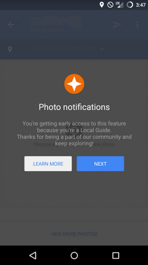 如今,Google果真實現當初許下的承諾,持續推廣上傳美食照片的新功能,活動初期只邀請「在地嚮導」三級以上的使用者進行測試。依照Google對「在地嚮導」等級的規範,三級以上的用戶必須撰寫50則以上的評論。Google美食地圖新功能的使用方法相當簡單,只要用戶拍下美食相關照片則會立即收到通知,被詢問是否上傳至Google Map,若確定上傳只要輕點兩下即可完成。