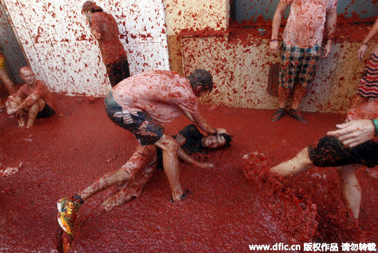 「番茄大戰(La Tomatina)」是西班牙布尼奧爾鎮著名的嘉年華活動,已有70年的歷史,每年都吸引成千上萬的遊客前往朝聖,兩側的店家都會在活動開始前將門窗緊閉。活動規則很簡單,為避免砸傷人,番茄都必須事先捏爛,其他蔬果一律不能使用。