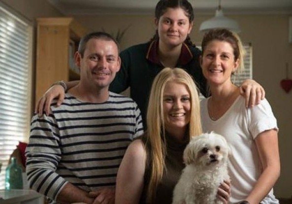 ▲罹患「睡美人病」的格林與家人合照。(圖/前排中/翻攝自The Courier-Mail)