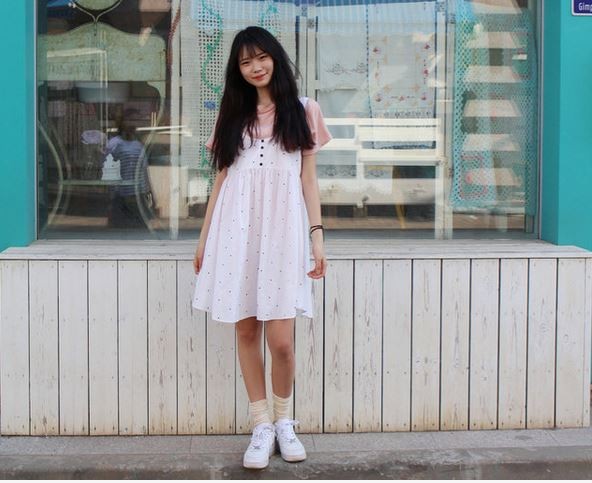 粉嫩色系的條紋襪,搭配鄉村感的休閒洋裝,是不是很可愛呢?