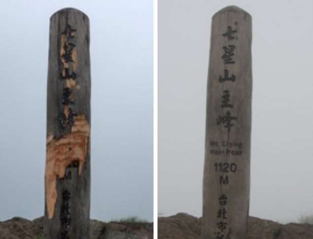 ▲七星山主峰告示原先的模樣已不復見。(圖/翻攝自爆料公社、陽明山國家公園提供)