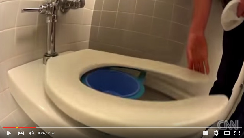 ▲艾瑞克會把塑膠桶掛在馬桶上收集大便。(圖/翻攝自YouTube)