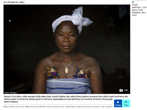 根據《每日郵報》(Daily Mail)報導,一名來自法國艾瑞克.拉佛(Eric Lafforgue)的攝影師,透過拍攝一系列的照片,記錄著這個非洲國家「養」巫毒娃娃的過程。當地有很多來不及長大就死亡的孩童,家人們會製作巫毒娃娃來紀念,而且還會把它們當成是「有生命的」在供養。