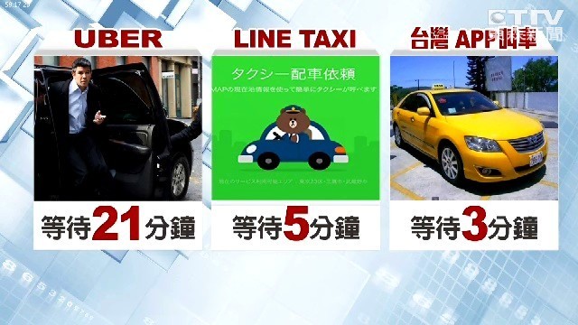 根據日本記者實測,在東京最忙碌的新宿車站叫車,叫Uber得要等待21分鐘,至於LINE Taxi因為配合車輛多,只要5分鐘,和台灣的APP叫車最快3分鐘相比,依然很有競爭力。只能說科技始終來自人性,儘管Uber被各國的小黃司機列為頭號勁敵,業者積極應戰,行動通訊時代,未來搭小黃,APP叫車恐怕會比攔車還便利。(新聞來源:東森新聞)