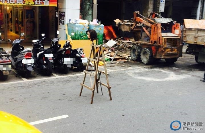 ▲提醒用路人的路障竟是「假人頭」。(圖/雲友提供,下同)