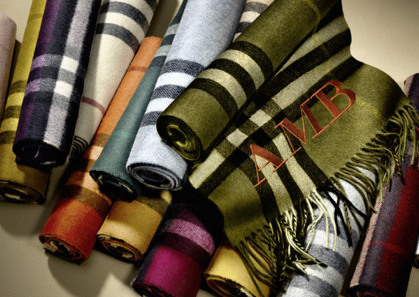 BURBERRY上個秋冬推出的客製化姓名縮寫圍巾服務,也應用到該系列之上,消費者可選擇3個英文字母繡在圍巾上,成為只專屬於自己的秋冬時髦配件,而這3個英文字母也可以運用品牌提供的30種不同繡線顏色繡上,變化多樣。