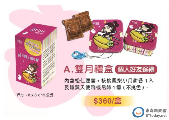 ▲雙月禮盒,內裝精緻小巧的月餅,每盒售價360元。(圖/奧比斯基金會提供,下同)