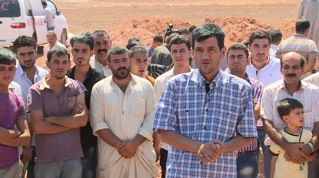 3具棺木並排在一起,躺在「烈士墓園」(Martyrs' Ceremony)乾裂的土地上。一小撮哀悼著聚集在棺木的周圍。當哀悼者用鏟子挖開泥土時,地面上揚起黃色的塵土。之後,棺木緩緩下葬時,阿卜杜拉已泣不成聲。