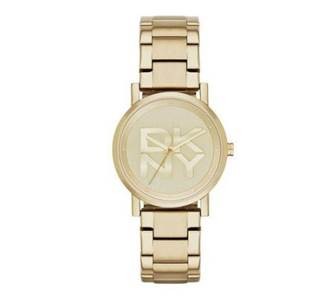 ▲DKNY 紐約時尚摩登LOGO金色腕錶,國際都會風格的代表,時、分、秒大三針顯示光燦迷人,亮麗更具有品牌風味,曲線俐落流暢,襯托自信與眾不同的姿態,特價5,222元。(圖/業者提供)