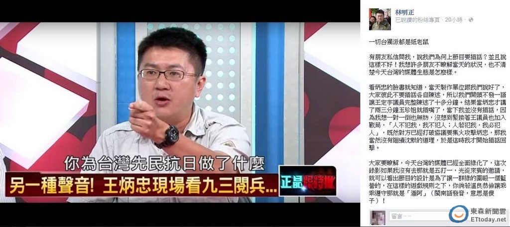 ▲林明正上政論節目。(圖/翻攝自林明正臉書)